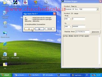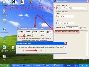 6) CON QUALI SISTEMI OPERATIVI FUNZIONA ?Funziona con Windows Xp Sp2 ,Xp Sp3 Server 2003 [Attenzione: WindowsXpKeygen.exe genera dei seriali puramente a scopo dimostrativo. Questa guida intende illustrarvi come poter cambiare il seriale non genuino con un codice seriale originale regolarmente acquistato. Sebbene nei circuiti p2p si trovano codici validi noi ne sconsigliamo l’utilizzo in quanto trattasi di una pratica non consentita dalla legge.] | ||