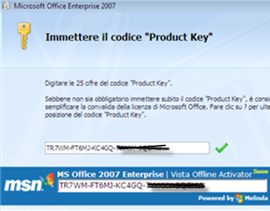 Cambiare il seriale regolarmente acquistato di OFFICE 2003Anche se in rete, nei vari circuiti p2p come emule, o nel sito piratebay, è presente un generatore di seriale per office 2003 chiamato Office.2003.Genuine.Advantage.Patcher-CLoNY, consigliamo vivamente di non rischiare ed inserire un seriale regolarmente acquistato, per non incorrere in sanzioni penali. | |||||||||||