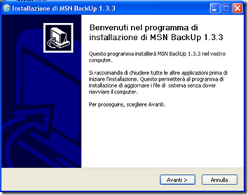 InstallazioneDopo aver scaricato MSNBackUp dal sito del produttore lanciamo il file eseguibile “msnbackup133.exe” ed installiamolo sul nostro computer | ||