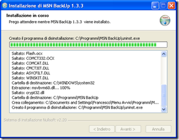| Installazione \t\tPasso 3 Il programma estrae i file che servono al suo funzionamento automaticamente | Installazione \t\tPasso 4 Dopo l’estrazione alla fine dell’installazione viene chiesto, prima di \t\tfinire, se eseguire MSNBackUp | |