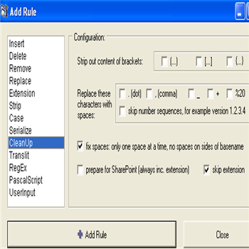 | CleanUp consente di levare gli spazi nei nomi dei files. | RegEx: consente di trovare una determinata parola e di sostituirla con un’altra. | |