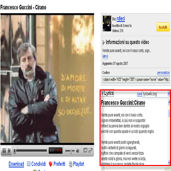 | Visualizzare il testo su Youtube: per visualizzare il testo dei video non dobbiamo fare altro che avviare Firefox e installare | Visualizzare il testo su Youtube: una volta installate le due estensioni per Firefox, automaticamente , quando ci collegheremo sul sito di Youtube per guardare un video musicale, il testo verrà automaticamente mostrato (se disponibile) nella colonna di destra, come nella figura mostrata sopra. | |
