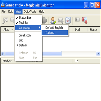 | Trasformare il programma in Italiano: basta scaricare il file di traduzione dal seguente indirizzo e inserirlo nella cartella del programma | Nuovo Account: cliccate con il tasto destro mouse sotto ad alias e dal menu contestuale scegliete nuovo | |
