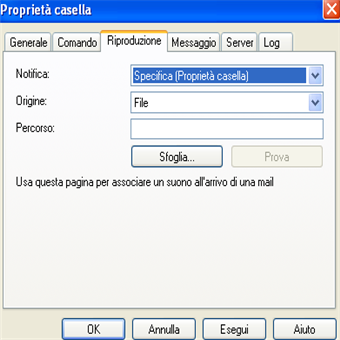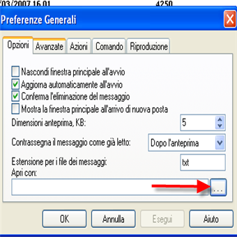 | Aprire le email su un altro programma: le nuove email vengono aperte con notepad, ma volendo possiamo scegliere di aprirle su qualsiasi altro gestore di posta come Outlook, Incredimail. Basta cliccare File/Preferenze generali/Opzioni”…” e selezionare il file eseguibile del programma da associare alle nuove email | Associare un suono alle nuove email: come potete immaginare il procedimento per associare il suono alle nuove email è molto semplice, basta cliccare sfoglia e selezionare il file musicale da associare alla nuova email. | |