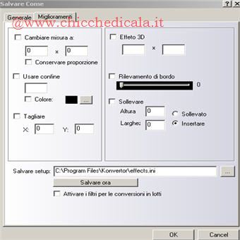 | Convertire 2: Nella seconda scheda dell’opzione Konvert, abbiamo la possibilità di sfruttare altre opzioni come quella del ridimensionamento, effetti tridimensionali, tagliare e migliorare il più possibile le immagini. Per modificare con molte più opzioni le immagini vi consiglio di aprire l’ottimo editor (doppio click sulla miniatura de) grazie al quale potrete modificare le immagini a vostro piacimento. | Setup: Ovviamente come tutti i programmi, sono presenti una serie di opzioni grazie alle quali potrete settare come meglio credere diversi parametri estetici e funzionali del programma. Ad esempio, potete scegliere il tema, impostare, l’ftp per trasferire i vostri file in siti remoti , associare file particolari all’apertura del programma, gestire cache, anteprime, editor e molto altro | |