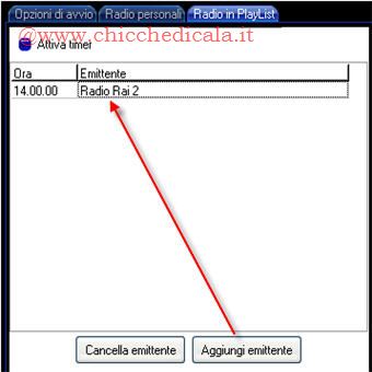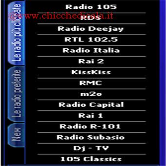 | Vogliamo far partire la trasmissione radio preferita all’ora che desideriamo? Nulla di più semplice! Portiamoci sulla terza opzione raggiungibile tramite Opzioni/Radio in Play List. Facciamo un doppio click su Ora, per impostare l”ora in cui la radio deve accendersi, e doppio click su Emittente per inserire la radio da avviare. Ultima cosa da fare è spuntare Attiva Timer. | La colonna di destra del programma vista più da vicino presente l’elenco delle radio classiche nella scheda “Le più cliccate”. Le radio che abbiamo aggiunto nel passo “Opzioni/Radio Personali” verranno aggiunte invece nella scheda Le mie preferite. Nella scheda New invece troverete radio nuove e da scoprire, sono tantissime, ma non dimenticate che potete sempre cercarne di altre tramite la funzione di Ricerca. | |