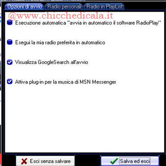 | Possiamo scegliere di eseguire automaticamente la radio all’avvio, magari con la nostra stazione preferita e altre opzioni ancora. Per abilitare queste opzioni portarsi su Opzioni/Opzioni di avvio. | Se quelle della lista non ci bastano, o se vogliamo una lista del tutto personale, portarsi in Opzioni/Radio personali e cliccare Cambia, poi inseriamo il nome della radio da cercare e Salva ed Esci. | |