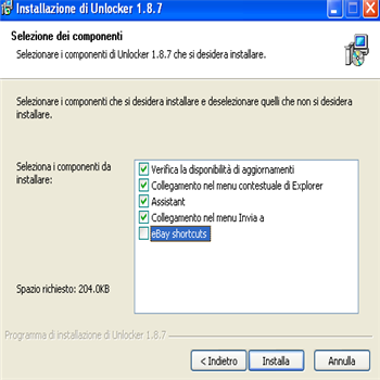 | Ecco un tipico esempio di messaggio di errore | Installazione di Unlocker | |