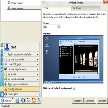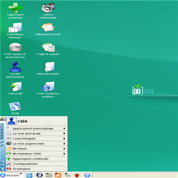 | No, non si tratta semplicemente di questo. Potremmo ad esempio caricare sul sistema operativo online le foto preferite, video, documenti e quant’altro. Una volta salvati nell’hard disk virtuale, tali file saranno sempre accessibili da qualsiasi PC connesso ad internet. Costerà un occhio della testa? No, gratis! Ma come funziona? Semplice, ci registriamo nel sito di OOdesk, questo il nome del sistema operativo online, poi potremo accedere al sistema operativo personalizzandolo a nostro piacimento. Infatti, non solo possiamo utilizzare i programmi standard installati, ma potremmo aggiungerne altri, grazie ad un apposita sezione che consente l’installazione dei cosiddetti Widget. Insomma, le potenzialità di OOdesk sono molte, io ho descritto brevemente quelle basilari, ora tocca a voi e scoprirne il resto.. | ||