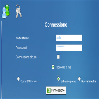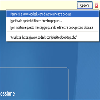 | In questa schermata non dovremo fare altro che il login con i dati inserii in fase di registrazione. Possiamo scegliere se visualizzare il tutto a schermo intero o in una finestra corrente o nuova. | Se utilizziamo firefox potremmo ricevere un messaggio di blocco pop-up. In tal caso clicchiamo sulla barra in alto e diamo il permesso al sito | |