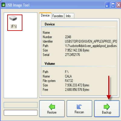 | Fare il backup dei nostri file, l’abbiamo detto tante volte, è una cosa estremamente importante. Ci aiuta a prevenire eventuali perdite di dati dovuti ad errori del disco oppure a distrazioni pericolose. Esistono svariati strumenti che ci consentono di fare una copia di sicurezza dei dati, ma USB Image Tool si differenzia dagli altri per la sua particolarità di creare l’esatta immagine del disco di periferiche USB, Ipod compreso, in modo estremamente semplice ed occupando pochissime risorse, pesa solo 180Kb! | ||