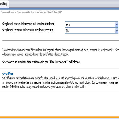 CARATTERISTICHE DEL SERVIZIO OUTLOOK MOBILEIntegrazione completa con Outlook Una volta installato, il servizio Outlook Mobile diviene parte di Outlook e le opzioni per i messaggi SMS/MMS si aggiungono alle opzioni per i messaggi di posta elettronica. I messaggi SMS/MMS che vengono inviati verranno salvati nella cartella Posta inviata e quelli ricevuti verranno inviati alla Posta in arrivo, proprio come i normali messaggi di posta elettronica. È inoltre possibile salvare i messaggi SMS/MMS nella cartella Bozze per un uso successivo. Messaggi SMS e MMS inviati direttamente dal computer Il servizio Outlook Mobile consente di creare messaggi SMS o MMS nel computer in uso. È sufficiente digitare il messaggio desiderato, aggiungere immagini o file audio e visualizzare in anteprima il messaggio prima di inviarlo.Messaggi di posta elettronica, promemoria e riepiloghi del calendario inoltrati al cellulare È possibile configurare l’account del servizio Outlook Mobile in modo da inoltrare messaggi di posta elettronica ed appuntamenti del calendario direttamente al proprio cellulare quando non si è in ufficio.Messaggi di posta elettronica e SMS/MMS inviati allo stesso tempo Con il servizio Outlook Mobile è possibile inviare simultaneamente un messaggio a cellulari e a indirizzi di posta elettronica. Il messaggio verrà inviato come messaggio SMS/MMS ai cellulari e come messaggio di posta elettronica agli indirizzi di posta elettronica, senza dover inviare il messaggio due volte.Nuova rubrica del cellulare Quando si crea un account del servizio Outlook Mobile, viene creata anche una rubrica del cellulare in cui sono riportate tutte le informazioni sui propri contatti. I contatti per cui è stato specificato un numero di cellulare nella rubrica di Outlook verranno aggiunti automaticamente a questa rubrica. Risoluzione automatica dei contatti Se quando si invia un messaggio SMS/MMS viene immesso un nome parziale, la funzione AutoResolve ricercherà i contatti che corrispondono a quanto immesso e li completerà. | ||