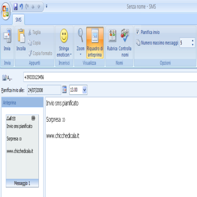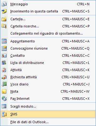 Inviare e ricevere SMS-MMS su Microsoft Outlook Office 2007