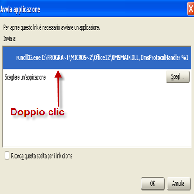 | Cliccare il link indicato in figura. | Fare doppio clic sul link per configurare automaticamente office 2007 con i nostri dati. | |