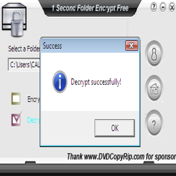 | Encrypt successfully: questo vuol dire che la nostra cartella è a questo punto nascosta e, anche se visualizzabile da altri percorsi, rimane comunque inaccessibile fino al successivo ripristino (decrypt). | Decrypt successfully: questo vuol dire che la nostra cartella è a questo punto rispristinata e accessibile da chiunque abbia accesso al PC. | |