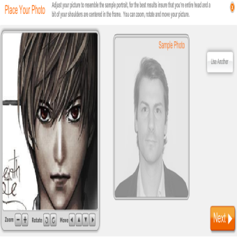 | Clicchiamo su “Browse” per scegliere la vostra foto | apparirà la schermata in cui sceglierete la disposizione del nostro viso, usando lo zoom e gli altri comandi. clikkate su “NEXT” | |