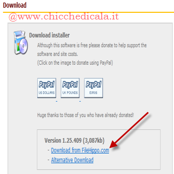 | Scarichiamo il software da QUI cliccando su “Download from FileHippo.com” | Avviamo il programma appena scaricato e facciamo partire l’installazione scegliendo la lingua e cliccando su “OK” | |