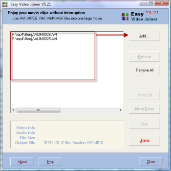 | Selezioniamo i file che desideriamo fondere. | Clicchiamo su join per avviare il processo di fusione dei video. | |