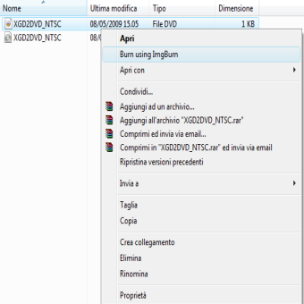 | Una volta fatto, create il file .dvd. Aprite il blocco notes e scrivete : LayerBreak=1913760 (a capo) nomegioco.iso e salviamolo nella stessa posizione della nostra iso | Finiamo il procedimento masterizzando il gioco.Cliccate con il destro sul nostro file .dvd e date “Burn with ImgBurn” | |