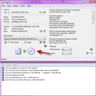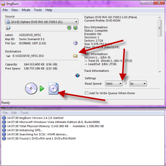 | Innanzitutto inserite il vostro gioco nel computer. Ora aprite Imgburn e cliccate su “Create image file from disc” | Ora date la destinazione al vostro file, poi avviate la procedura. | |