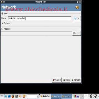 | 5. Saltiamo la schermata network wizard cliccando su Forward. 6. Nella sezione Network spuntiamo la voce New e nel campo di testo Name scriviamo un nome a piacere con cui identificare la rete locale. Procediamo oltre cliccando ancora su Forward. | ||