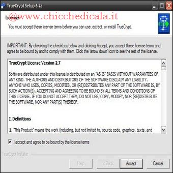 | 1. Collegatevi al sito Fate clic sulla voce Download con l’indicazione Windows Vista/XP/2000. Una volta terminato lo scaricamento, fate doppio clic sull’icona del file ottenuto (TrueCrypt Setup 6.2a.exe) per iniziare l’installazione. Accettate le condizioni di licenza, e continuate a fare clic su Next, e poi su Install. Non è necessario modificare alcuna impostazione. Al termine della procedura, fate clic su OK e poi su Finish. 2. Avviate TrueCrypt: vi apparirà la schermata del programma. Fate clic sul pulsante Create Volume: potrete scegliere tra la creazione di un file crittografato, di un’intera partizione crittografata, e la crittografia dello stesso disco di sistema. Come esempio sceglieremo la prima ipotesi, ma le altre due sono sostanzialmente simili. La prima voce è già selezionata, quindi fate clic su Next. | ||