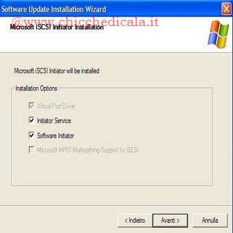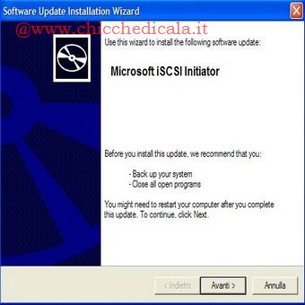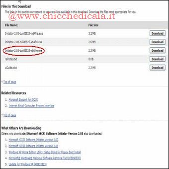 | 1. Colleghiamoci al sito microsoft, scorriamo la pagina verso il basso e clicchiamo sul pulsante Download in corrispondenza del collegamento Initiator-2.08-build3825-x86fre.exe (tenendo presente che il numero di versione potrebbe, ovviamente, cambiare). | 2. Quando richiesto, salviamo il file Initiator-2.08-build3825-x86fre.exe in una cartelladell’hard disk. Al termine, eseguiamolo e clicchiamo su Esegui se Windows ci mostra un messaggio di sicurezza. Quando appare la finestra d’installazione, clicchiamo su Avanti. | |
