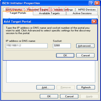 | 4. Per conoscere l’indirizzo di rete del computer sul quale si trova il masterizzatore, clicchiamo su Start/Esegui e diamo il comando cmd. Scriviamo ipconfig e diamo Invio. Appuntiamoci quindi il valore che appare accanto alla voce Indirizzo IP. | 5. Spostiamoci sul nostro PC e avviamo il driver Microsoft iSCSI Initiator con un doppio clic sulla relativa icona del desktop. Nell’interfaccia di gestione, apriamo il tab Discovery (o target portals ). Clicchiamo sul pulsante Add e inseriamo l’indirizzo IP che avevamo precedentemente annotato. | |