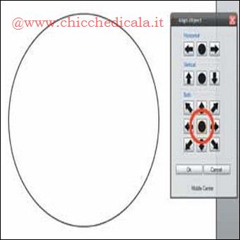 | 3. A questo punto entra in gioco il plug-in che avete scaricato: nel menu Effects, come ultima voce, dovrebbe essere presente il comando Align Objects. Basta richiamarlo e, nella finestra che appare, fate clic sul pulsante evidenziato in figura. In questo modo, la figura su cui si sta lavorando viene centrata nel foglio, sia orizzontalmente sia verticalmente. 4. Le operazioni che vanno dalla creazione del nuovo livello fino alla centratura dell’immagine vanno ripetute altre due volte, con cerchi di diametro 1,5 e 5 centimetri. La situazione, alla fine della procedura, dovrebbe essere quella visibile nell’immagine qua sopra. Nel menu Layers potete lanciare per due volte consecutive il comando Merge down layers, per creare un unico livello contenente tutte e tre i cerchi, pronti a fare da modello per la stampa del vostro disco. Ora potete creare un nuovo livello (passo 2) e disegnare al suo interno quello che volete, all’interno questo modello: prima della stampa ricordate di disattivare il livello contenente le guide, utilizzando la casella di controlloevidenziata in figura, in modo da non vedere degli antiestetici bordi neri nella vostra stampa. | ||