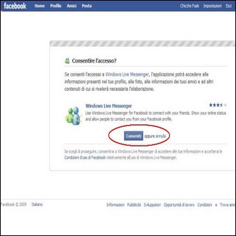| Secondo i dati forniti dal sito stesso, nell’aprile 2009 il numero degli utenti attivi ha raggiunto i 250 milioni in tutto il mondo, propio per questo, in questo tutorial vedremo come inserire sul profilo il nostro contatto messenger, in questo modo daremo un tocco d’originalità ed aggiungeremo una funzione che potrà tornarci utile nel caso volessimo chattare col noto client di messaggistica direttamente da facebook, ma vediamo come procedere. | ||