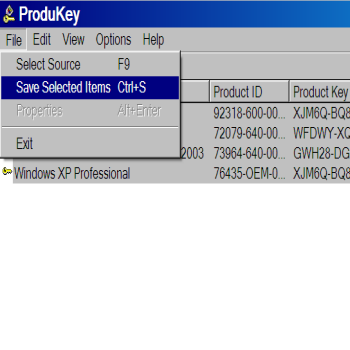 | Per visualizzare tutti i product key memorizzati sul PC basta semplicemente eseguire ProduKey.exe | Per salvare i seriali in un file di backup selezionare tutti gli elementi interessati e cliccare CTRL S | |