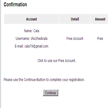 | Registrazione 3: Ecco la conferma della nostra registrazione, \t\tnon dovremo convalidare nulla per email. |
