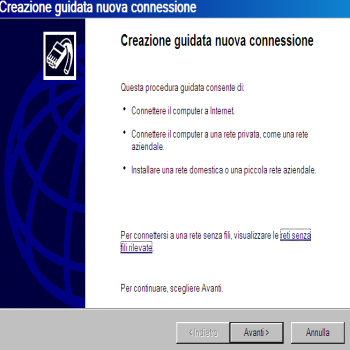 Creazione VPN 1: Portarsi su Start/Connessione di \t\trete/Creazione guidata nuova connessione |