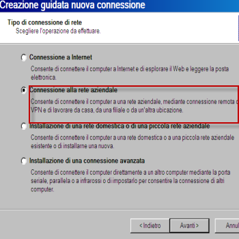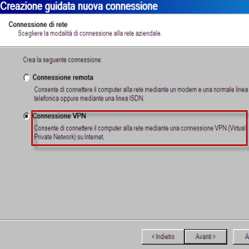 | Creazione VPN 4: Spuntiamo connessione VPN e clicchiamo Avanti. |
