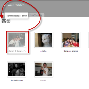 | Da Facebook: il programma ha creato un album in cui ha caricato le foto scelte precedentemente. Nel caso lo si desiderasse le foto possono essere spostate in ul album esistente. | Scaricare interi album da un amico di Facebook: clicchiamo su Facebook / Friends e avremo a disposizione la lista di tutti i nostri amici. Sulla destra avremo due schede una con tutti gli album a disposizione, l’altra con tutte le foto dell’album selezionato. | |