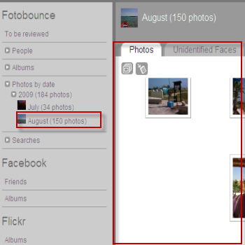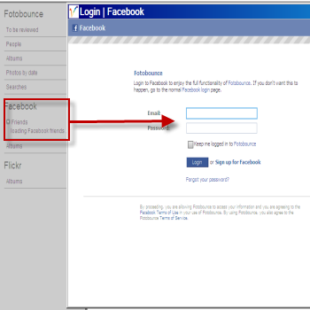 | Facebook dentro Fotobounce: ora dobbiamo far in modo che i due programmi si parlino, per far ciò clicchiamo su Friends e inseriamo i dati di accesso di Facebook. | Caricare un foto della libreria su Facebook: dopo aver indicato la libreria in cui sono contenute le nostre foto, il programma ci consente di accedere alla stesa classificandocela per mesi. | |