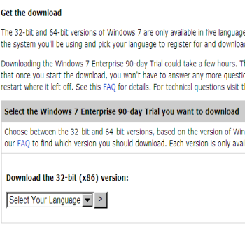 Stiamo parlando di Windows 7 Enterprise 90-giorni di prova. Se ancora non avete provato Windows 7  non vi resta che scaricarlo e magari virtualizzarlo sul vostro sistema operativo attuale per evitare che allo scadere dei 90 giorni dobbiate ricorrere a laboriose procedure di disinstallazione. Questa versione non ha bisogno di alcun procut key da inserire e deve essere attivata entro 10 giorni dall’installazione.