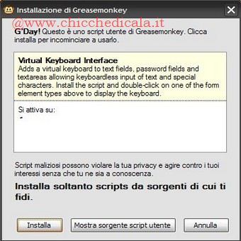 | Basta andare in questa pagina e cliccare su Install this script, accettare l’installazione dello script in Greasemonkey, fare doppio click in qualsiasi campo di testo affinché compaia il tastierino virtuale ed il gioco è fatto. Inutili dire che è un buon modo per prevenire keylogger, specialmente se usufruite dell’internet Banking. Va infine sottolineata, oltre la cura grafica, anche la completezza di Virtual Keyboard Interface, che supporta praticamente tutti i tipi di layout di tastiera relativi alle varie lingue (italiano incluso). Allora che aspettate a provarlo e dirci cosa ne pensate ? | ||