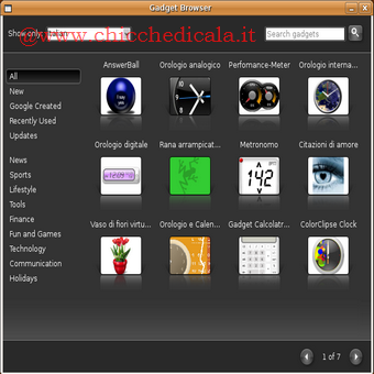 | Cosa fare per installarli: Andiamo in Sistema>Amministrazione > Sorgenti Software > Software di terze parti, premiamo il bottone Aggiungi ed inseriamo la seguente linea: deb http://ppa.launchpad.net/googlegadgets/ubuntu hardy main Chiudiamo il pannello Sorgenti Software e ricarichiamo i pacchetti provenienti dal repository, premendo il bottone Ricarica. Ora andiamo in Applicazioni > Accessori > Terminale, scriviamo sudo aptitude install google-gadgets, premiamo INVIO e l’installazione avrà inizio!Completata l’installazione, per avviare Google Gadgets premiamo ALT + F2, scriviamo < ggl-gtk > e premiamo il bottone Esegui. Se è la prima volta che vediamo Google Gadgets in azione lo stupore è assicurato! | ||