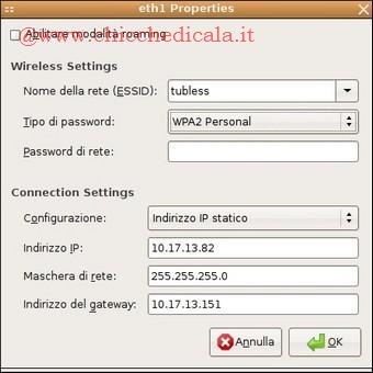 | Una volta fato questo ci resta solo da impostare i server DNS. \tPer far questo torna alla prima finestra della configurazione di rete e selezione il tab DNS Configurazione di rete wireless: Seleziona Connessione wireless e Proprietà, ti si aprirà la seguente finestra. | ||