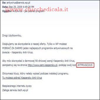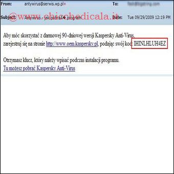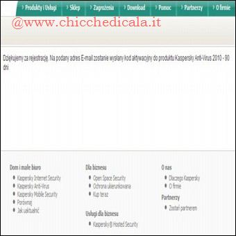 | 9. La pagina successiva ci avviserà che sarà inviata la nostra chiave di licenza con validità trimestrale all’indirizzo indicato. | 10. Nel giro di 24 ore riceverete una E-mail con oggetto Kaspersky Lab Polska] Rejestracja produktu Kaspersky Anti-Virus 2010 -90 dni contenente la nostra chiave. Procediamo con il download | SECONDO METODO |