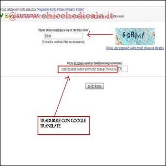 | 3. Compiliamo i campi richiesti; Nome-Cognome-Username-Password, conferma Password, scegliamo la seconda domanda (chi è il tuo eroe?) con risposta annessa-E-Mail-Numero Telefonico +50 seguito da 9 cifre-Sesso-Data di Nascita e 3 opzioni a piacere. | 4. Nella parte inferiore della stessa schermata spuntiamo la voce zaloguy sie, aby pobrac Akceptuję Regulamin…….. compiliamo il codice Captcha e rispondiamo al quesito che ci viene posto, utilizzando Google Translate. (cambia ogni volta). | |