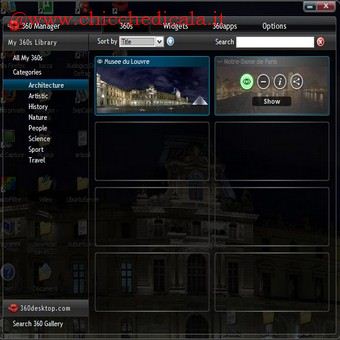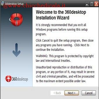 | 1. Installiamo il software facendo doppio clic sul file 360desktop-setup.exe. All’avviso di protezione Windows clicchiamo su Esegui e poi su Next. Mettiamo il segno di spunta alla voce I accept the license agreement e proseguiamo con Next. Attendiamo il termine dell’installazione e terminiamo su Finish. | 2. Avviamo il programma dal menu Start\Tutti i programmi. Uno degli sfondi di default viene subito attivato e in alto a destra compare una barra di scorrimento. Per muovere il desktop panoramico clicchiamoci sopra e, tenendo premuto il tasto sinistro del mouse, spostiamo il cursore a forma di mano. | |