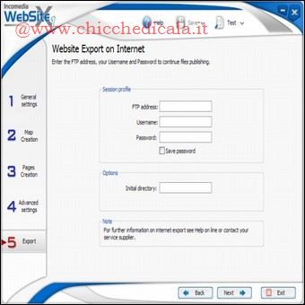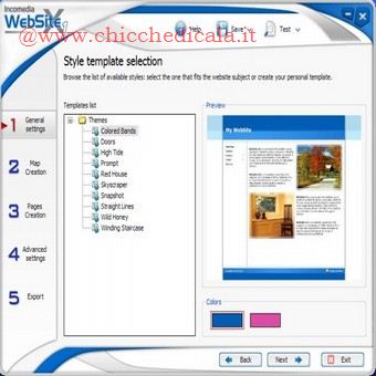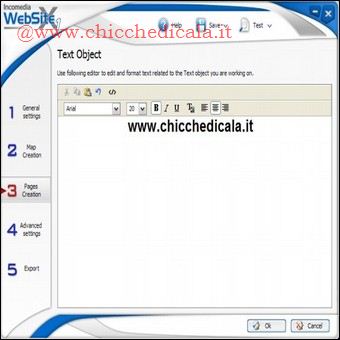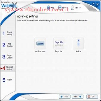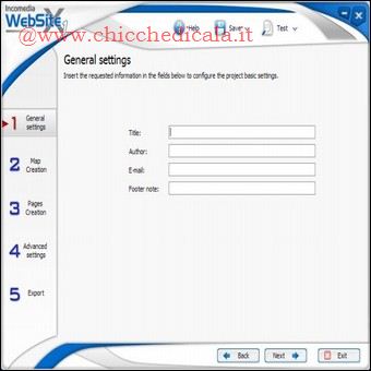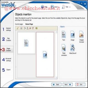 | PAGINE FANTASMA: Se vogliamo che le pagine vengano visualizzate in tempo reale sul browser in fase di compilazione della mappa del sito (Passo 6) selezioniamo la voce Test, la pagina si aprira automaticamente, potermmo farci un idea del progetto realizzato. COLLEGAMENTI INCROCIATI: Abbiamo un numero molto elevato di pagine e le voci di menu non sono sufficienti perché composte da un unico livello? Sfruttando le pagine non visibili, linkate all’interno delle pagine principali, possiamo creare delle sezioni del sito anche molto ricche e strutturate. Per inserire i link alle pagine non visibili basta comporre un testo e applicare la funzione Inserisci collegamento. FLASH E VIDEO: Possiamo pubblicare animazioni Flash o filmati video da visualizzare nelle pagine (i file da caricare devono essere disponibili sul nostro disco fisso). Durante la composizione delle pagine, inseriamo Animazione Flash o Video/Audio nella posizione desiderata. Clicchiamo due volte su di essi per caricare i file e configurarne la visualizzazione. ANCHE PER ESPERTI: WebSite X1 è un software visuale. Ciò non toglie che si possono modificare gli elementi grafici creati aprendo gli HTML esportati sul disco fisso, oppure sostituendo i file standard con quelli modificati (opportunamente rinominati) nelle cartelle delle immagini. | ||