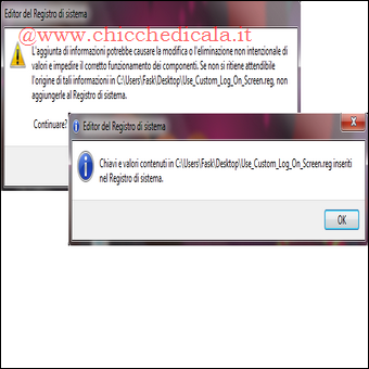 | 8. A questo punto, se avete eseguito tutti i passaggi con ordine avrete personalizzato la schermata di Logon, verificate il tutto cliccando CtrL+Alt+Canc. 9. Nel caso volessimo tornare allo stato originale, basterà eseguire il file LogonDefault .reg presente nell’archivio LogOnPersonalizzato.rar. | ||