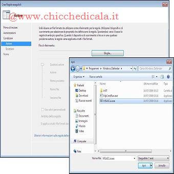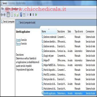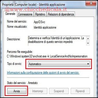 | 1. Per avviare il servizio Identità applicazione, clicchiamo sul pulsante Start/Esegui e digitiamo services.msc. Nella console snap-in Servizi cerchiamo il servizio Identità applicazione, tasto destro del mouse e selezioniamo proprietà. Nella finestra di dialogo clicchiamo su Automatico, su Avvia e quindi su OK. Chiudiamo la finestra Servizi e proseguiamo. 2. clicchiamo sul pulsante Start, nella casella Cerca programmi e file digitiamo secpol.msc e quindi premiamo INVIO. È inoltre possibile: cliccare sul pulsante Start e quindi scegliere Pannello di controllo /Sistema e sicurezza e quindi su Strumenti di amministrazione ed infine su Criteri di sicurezza locali. NOTA: Se viene visualizzata la finestra di dialogo Controllo account utente, confermiamo che l’azione visualizzata clicchando su Sì. 3. Nell’albero della console facciamo doppio clic su Criteri di controllo delle applicazioni e quindi su AppLocker. Facciamo clic con il pulsante destro del mouse su Regole Eseguibili. ( da notare che è possibile generare automaticamente regole per eseguibili, Windows Installer e script), quindi su Crea nuova regole. | ||