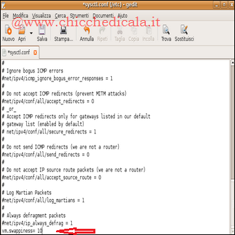 | 3. Apriamo, con privilegi di root, il file /etc/sysctl.conf in un editor di testo e aggiungiamo in fondo la linea: vm.swappiness=10 Dovremo riavviare la sessione affinchè ciò abbia effetto. Potete inserire i valori diversi per vedere qual’è quello migliore per il vostro sistema. Minore è il valore, meno spesso verrà usato lo swap e maggiore sarà la quantità di dati memorizzati in RAM. | ||