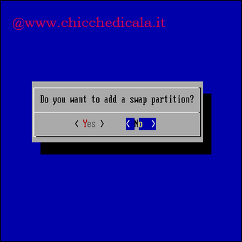 | 8. Ora ci verrà chiesto di selezionare un disco rigido per l’installazione. Se abbiamo solo un disco rigido, la scelta è ovvia, ma se disponiamo di 2 hard disk sarà possibile selezionarli per scegliere dove installare il sistema FreeNas. | 9. Se avete scelto “Install ‘embedded’ OS su HD/Flash/USB + Dta + Swap” nella schermata successiva, ci verrà chiesto di creare una partizione di Swap in modo da estendere la capacità della memoria volatile complessiva del computer, oltre il limite imposto dalla quantità di RAM installata, a voi la scelta. | |