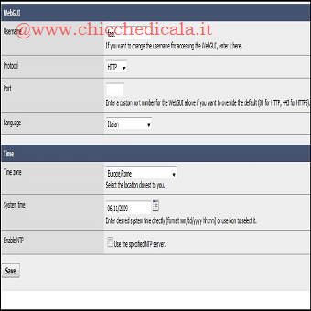 | 3. Nella parte superiore cambiamo HostName e Domain con nomi a nostro piacere, in realtà non importa in termini di configurazione, ma diamo un tocco di personalizzazione al nostro NAS. \t 4. La prossima cosa da fare è cambiare il nome utente per la WebGUI. Scorriamo fino alla sezione WebGUI e nel campo Username sostituiamo admin, mentre nel campo Language selezioniamo Italian. 5. Successivamente, avremo bisogno di configurare il fuso orario, spostiamoci nella sezione Time e nel campo Time Zone selezioniamo Europe/Rome, mentre nel campo System Time scriviamo data e ora (o clicchiamo sull’icona posta a lato) . Al termine clicchiamo su Save e inseriamo nuovamente username e password nella finestra di Login. | ||