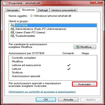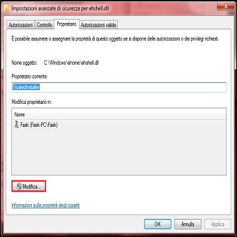 Per modificare ehres.dll, dobbiamo disporre del diritto d’ accesso, è necessario diventarne il proprietario in modo da poter cambiare le autorizzazioni di protezione originariamente create per file e cartelle, ma vediamo come. | ||